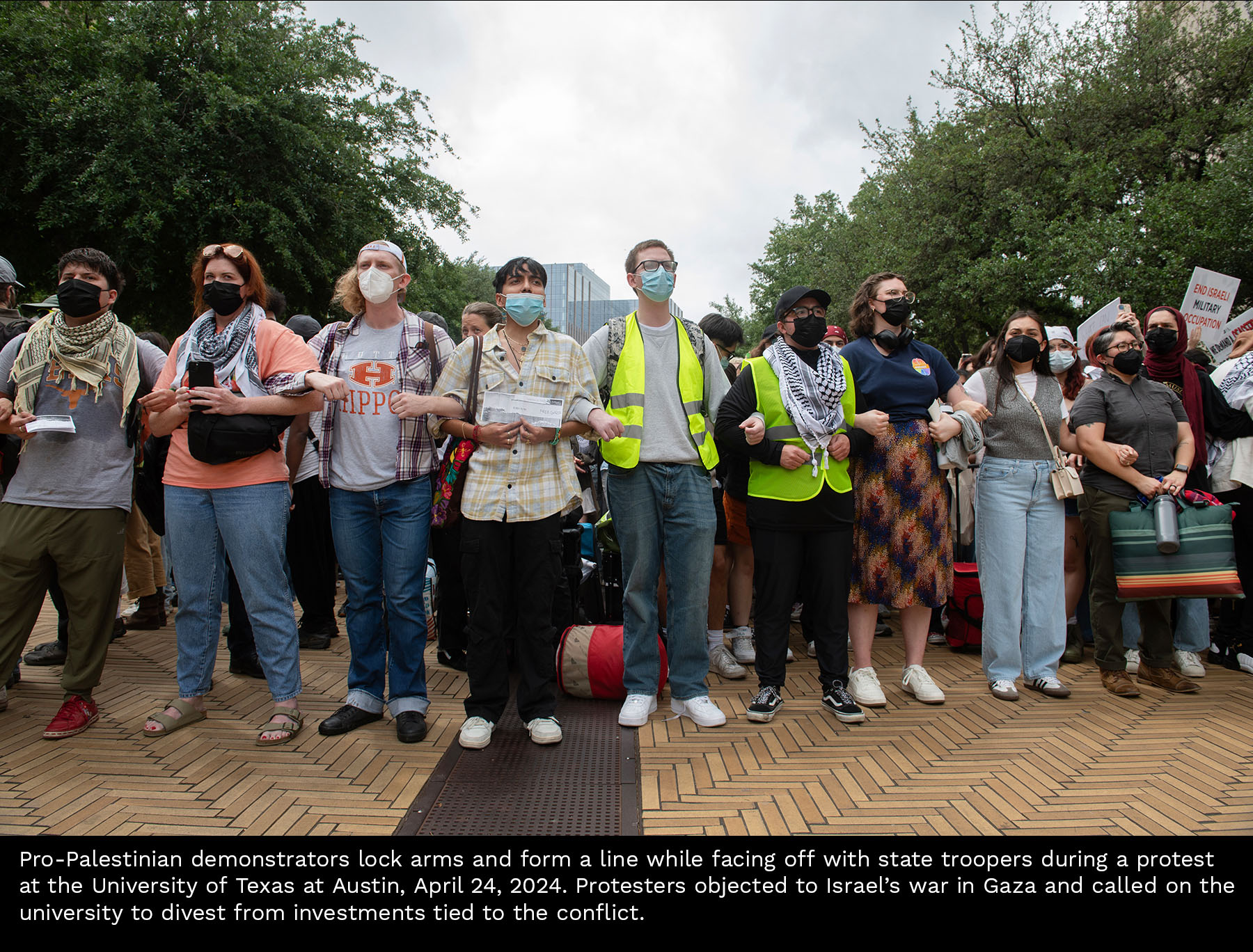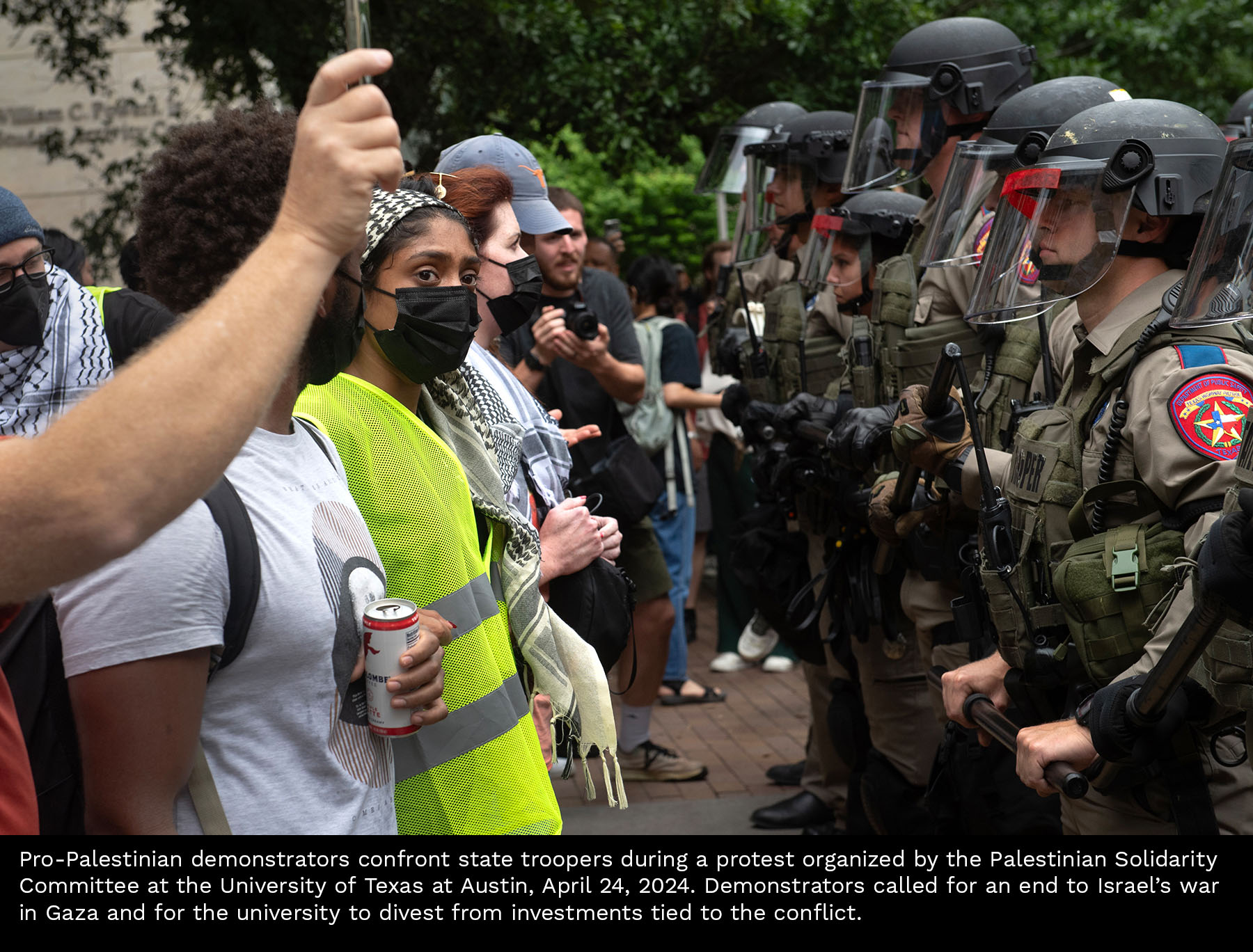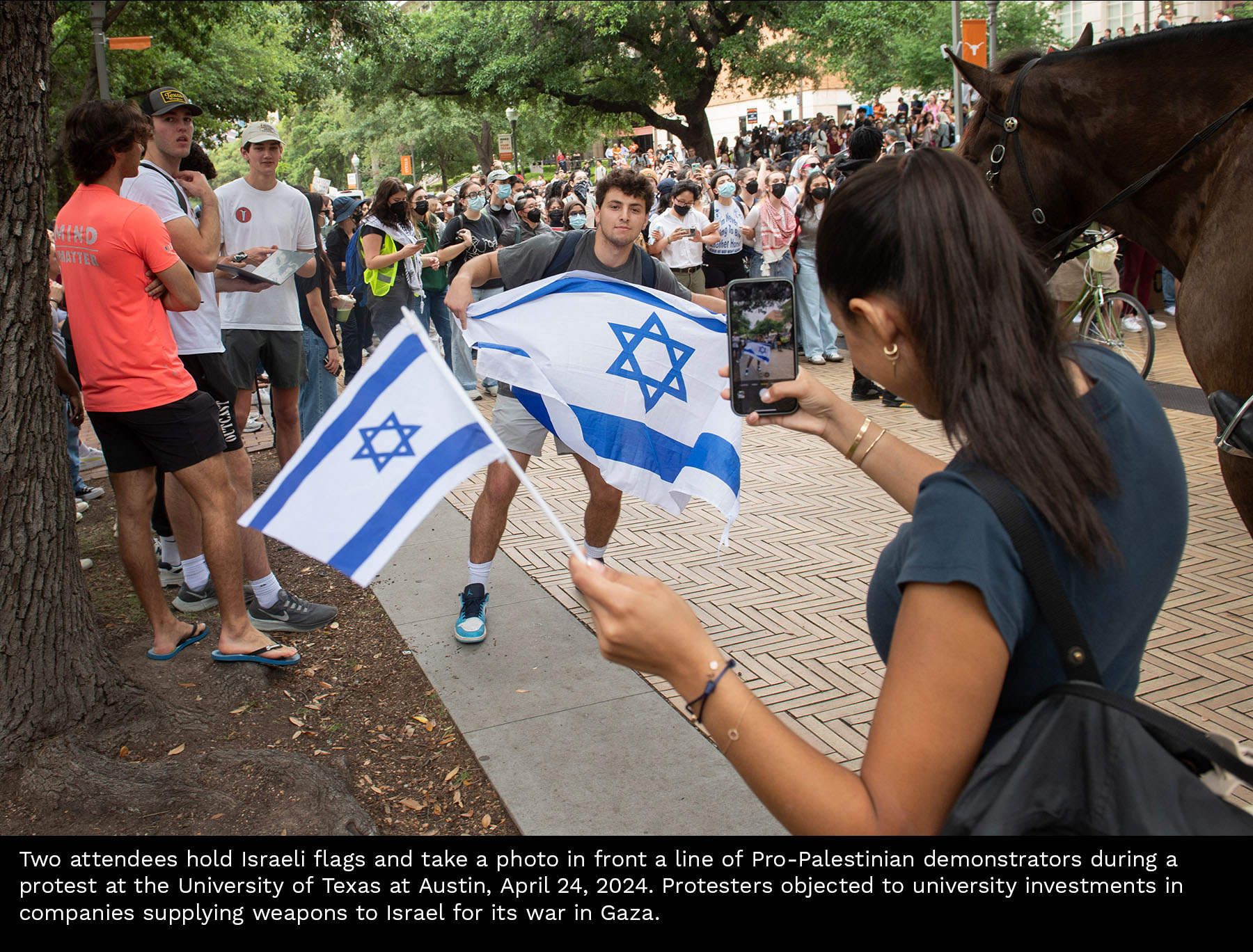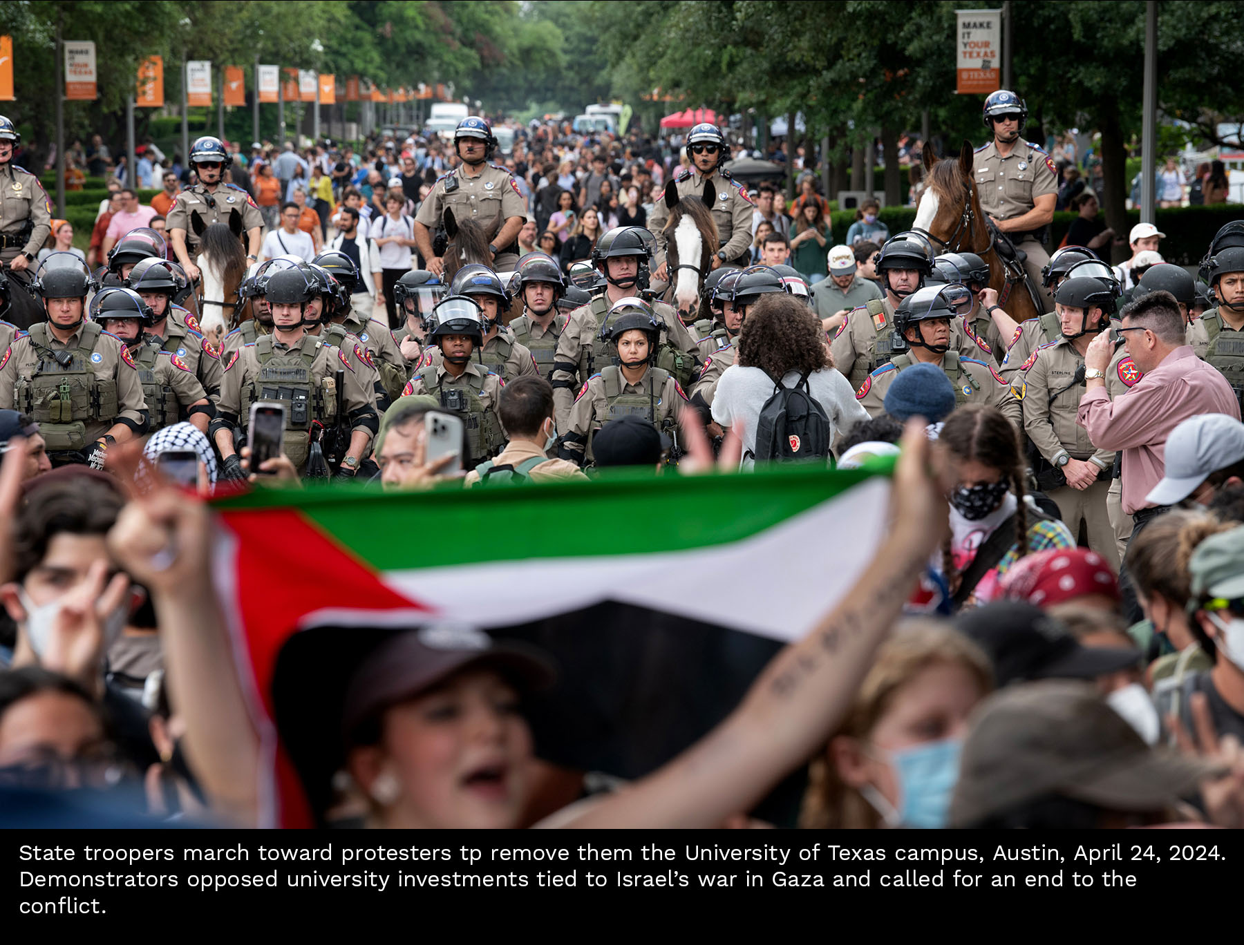 Scenes from a Gaza divestment demonstration at the University of Texas on April 24, 2024. Select photos for captions.
