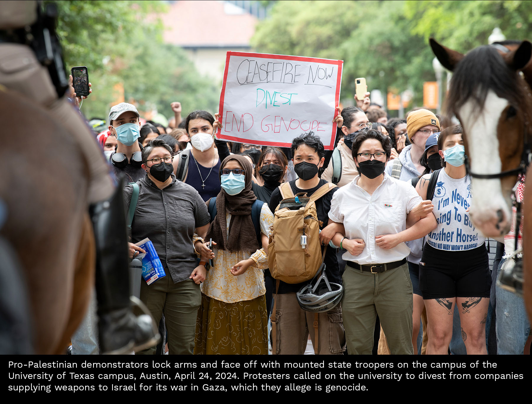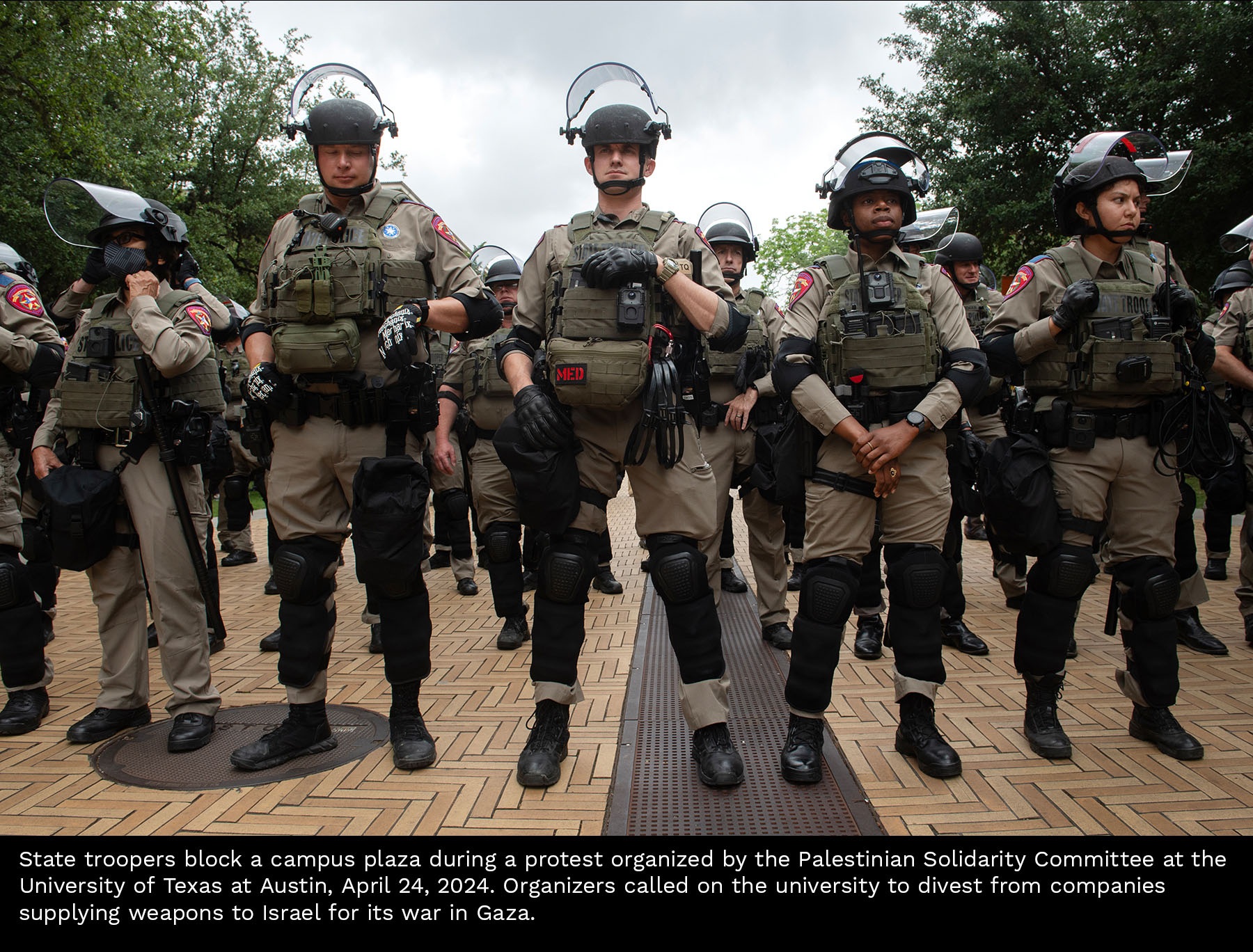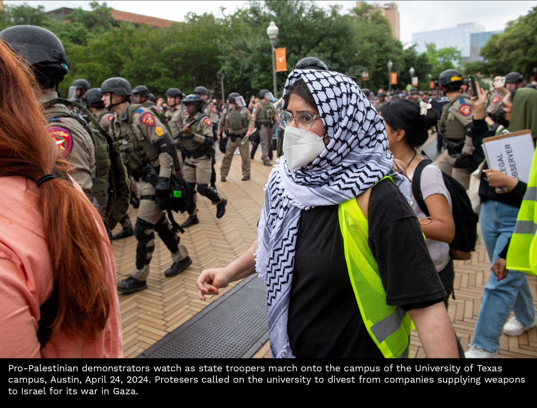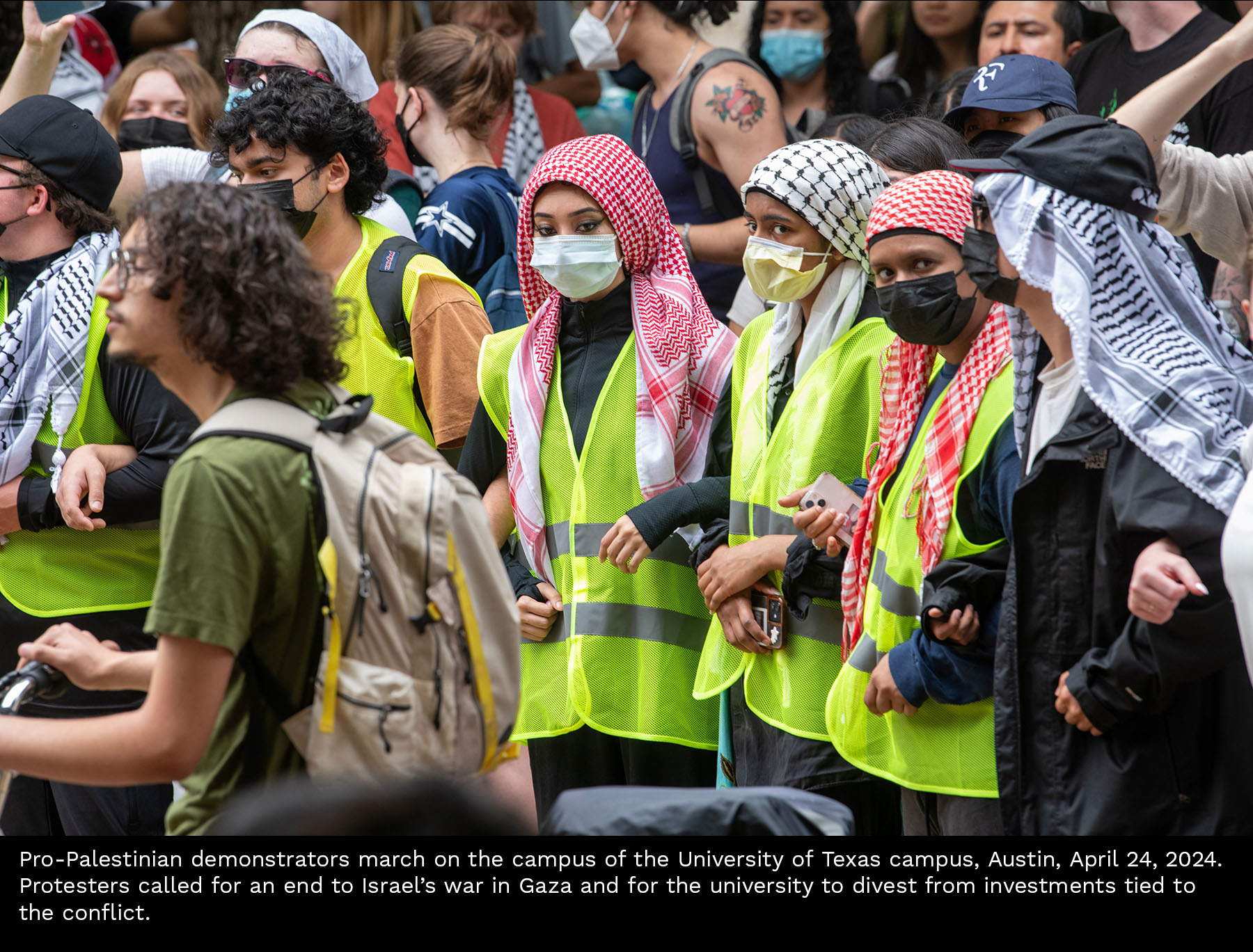 Scenes from a Gaza divestment demonstration at the University of Texas on April 24, 2024. Select photos for captions.