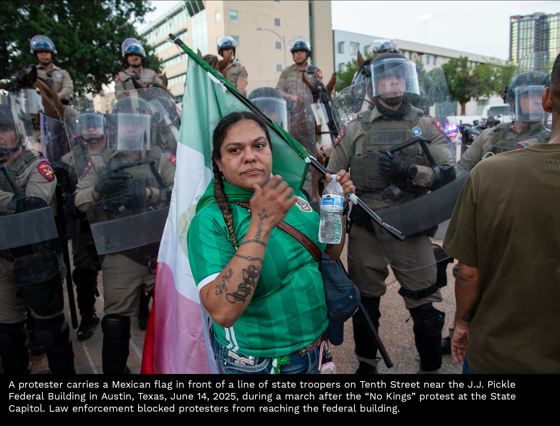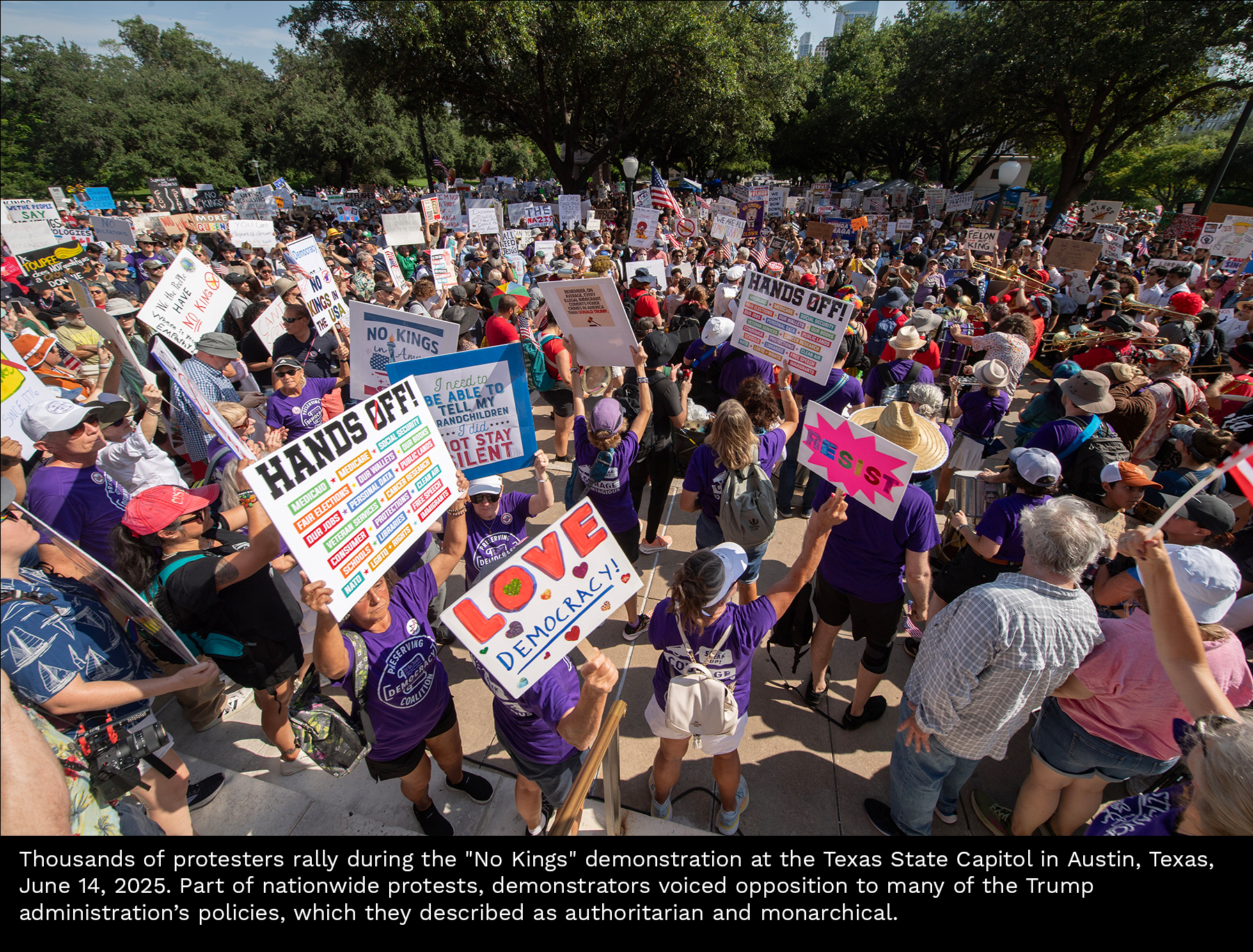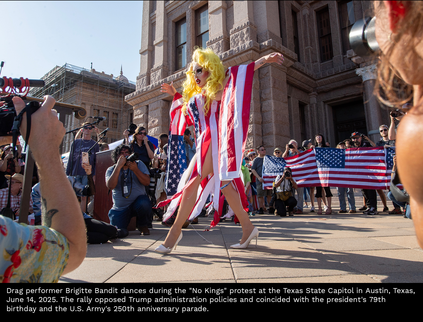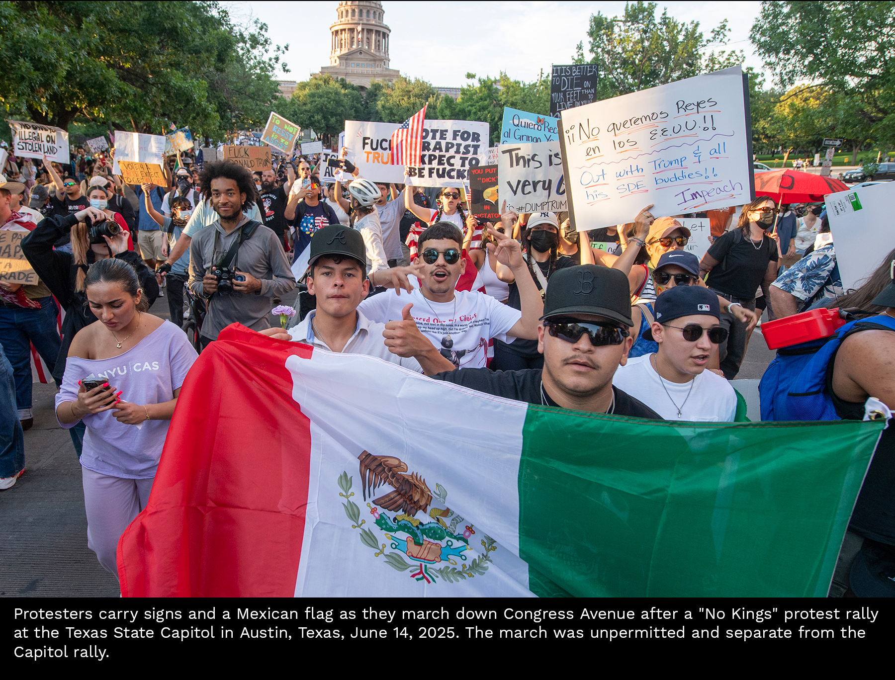 Scenes from the "No Kings" protest in Austin, Texas on June 14, 2025. Select photos for captions.