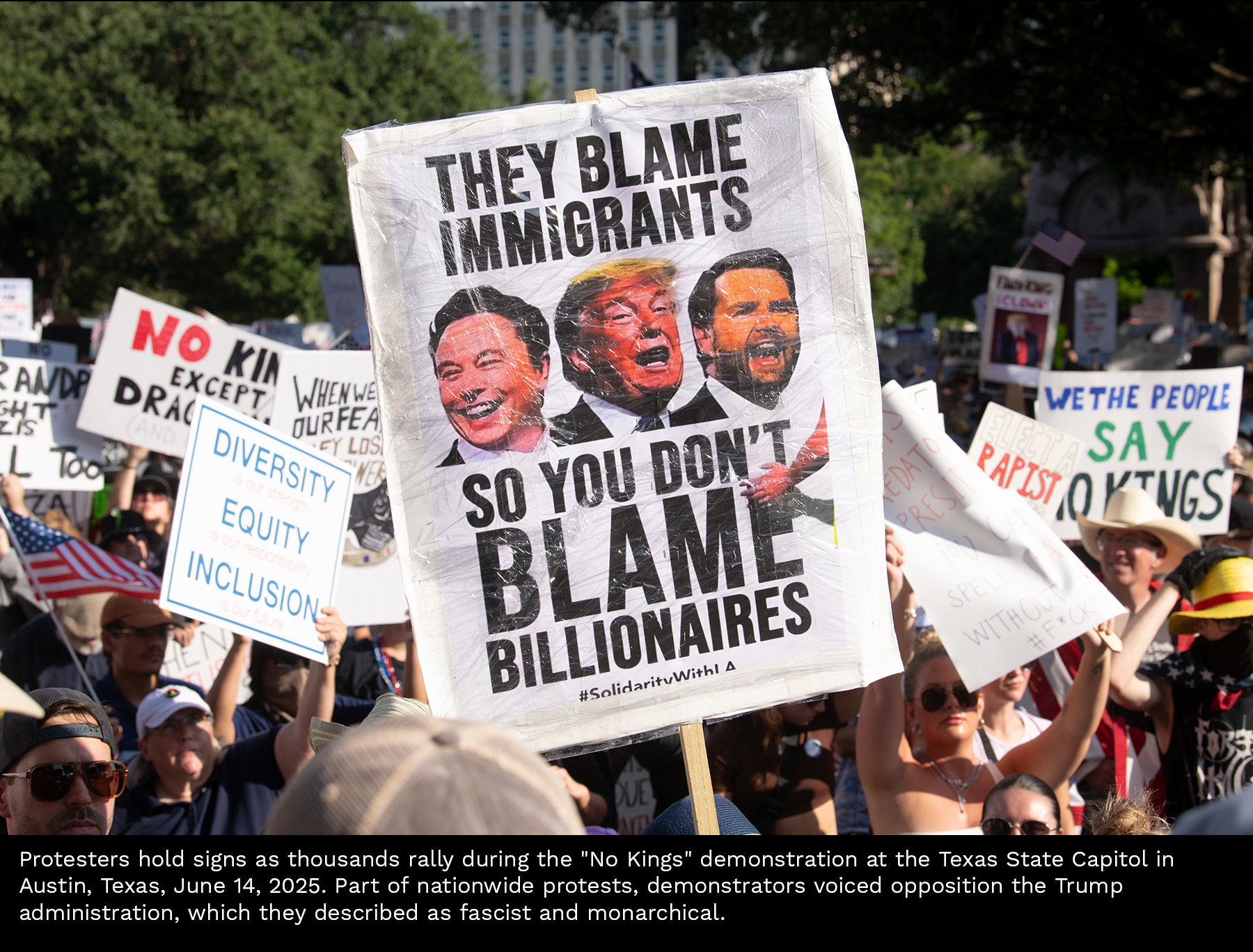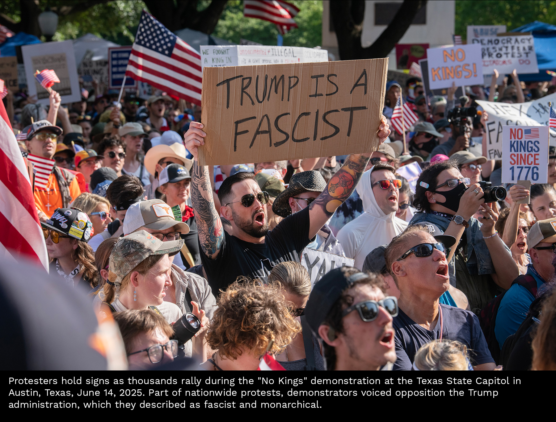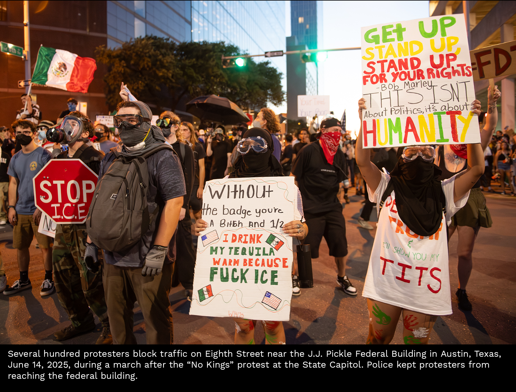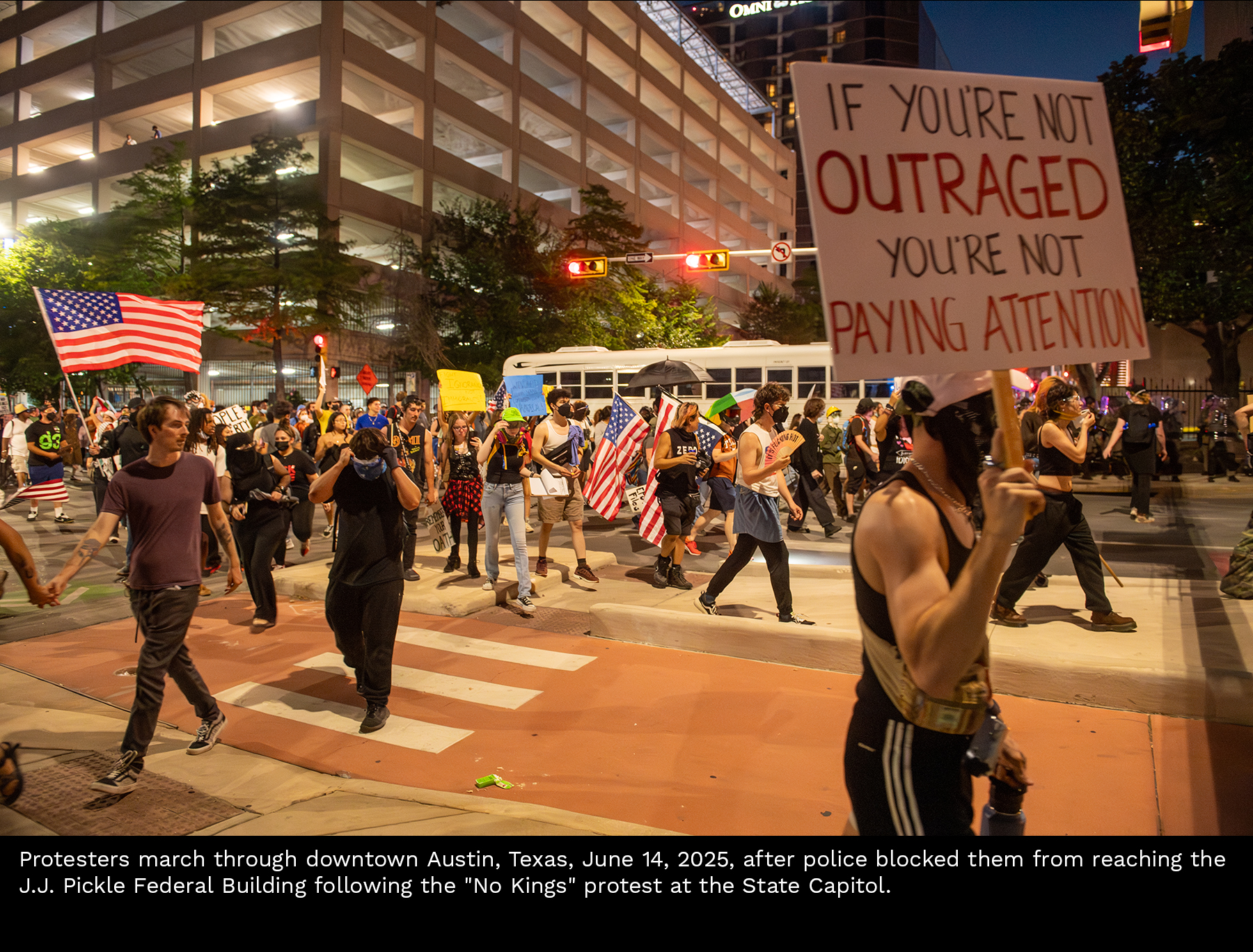 Scenes from the "No Kings" protest in Austin, Texas on June 14, 2025. Select photos for captions.